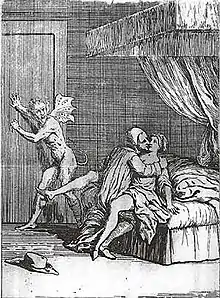 Catherine Cadière was born to a merchant, whose health was ruined by the plague in 1720, and lived under the guardianship of her widowed mother and three brothers. When she was eighteen, she joined "a loosely organized group of women who, through living in their own homes, were dedicated to prayer and meditation. The spiritual director of these devotees of the Third Order of St. Theresa" was the Jesuit Jean-Baptiste Girard (1680–1733), whom she met in 1728.[1] She was encouraged by Girard in the belief that she suffered from holy convulsions and saintly stigmata and spiritual visions, which Girard presented as the symptoms of a saint. He visited her often and possibly abused her sexually. Her emotional state during these experiences was described as hysterical.