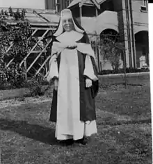 Because of her desire to attend university, Sister Mary Anselm moved to Santa Sabina Dominican Convent School in Strathfield in 1921. She attended the University of Sydney, graduating in 1924 with a Bachelor of Arts with first-class honours in English and Latin and the university medal for English.[3] She continued her education, completing a diploma in education in 1925. In 1928 she obtained a Master of Arts in English literature, with first-class honours, completing a thesis titled "Tragedy in English Literature".[4] From 1925 until 1945, Sister Mary Anselm taught English, Christian doctrine, French and Latin at Santa Sabina.