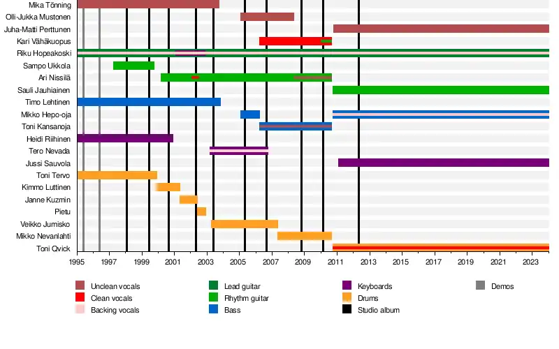 - Riku Hopeakoski − lead guitar, backing vocals (1995–present), keyboards (2001–2002)[3]