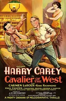 Cavalier of the West is a 1931 American Western film written and directed by John P. McCarthy. Distributed by State Rights, Weiss Bros. and Artclass Pictures Corp., the film was released in the US on November 15, 1931,[2] and marked the acting debut of five-year old Elena Verdugo, in an uncredited appearance.[3]