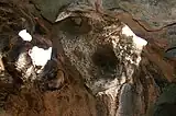 Left: View from Guadirikiri Cave. Right: Holes in the roof of the cave