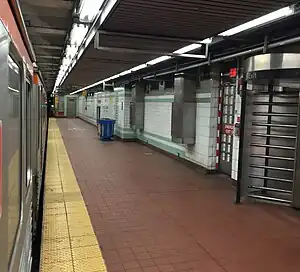 Side platform with fare control, doors will open on the right | |