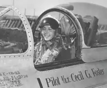 Cecil Glen Foster (August 30, 1925 – July 5, 2016) was a veteran of the Korean War and the 23rd United States Ace: he shot down 9 Mig-15s. He was a recipient of the American Fighter Aces Congressional Gold Medal, the Distinguished Flying Cross, two Silver Stars and a Purple Heart.[1] During the Korean War Foster flew 200 combat sorties.[2] He was also commanded the 390th Tactical Fighter Squadron during the Vietnam War.[3]