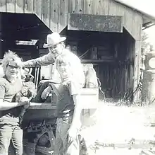 Cecil De Loach (seated on tractor) on the Barbieri Ranch circa 1970 with his two sons John (left) and Michael.