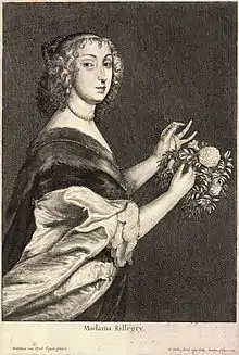 Her portrait by Anthony van Dyck was engraved by Wenceslaus Hollar.