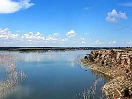 Cedar Bluff Reservoir is a reservoir in Trego County, Kansas, United States.[5] Built and managed by the U.S. Bureau of Reclamation for irrigation and area water supply, it is also used for flood control and recreation. Cedar Bluff State Park is located on its shore.[6]