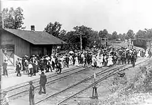 Cedar Gap, at an elevation of 1,694 feet (516 m),[3] was established in 1882 as a station on the Springfield – Memphis line of the St. Louis-San Francisco Railway. It was named for the cedar trees and the topographic "gaps" which had to be bridged by the railroad in the more rugged terrain of the Lead Hill area 1.8 miles (2.9 km) to the east, the second highest point in Missouri at 1,744 feet (532 m).[4][5] The early railroad also constructed a dam to form the 40 acre Cedar Gap Lake one mile to the northwest on the Wright–Webster county line as a water supply for the steam engined trains.[5][3]