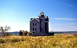 The 40-foot (12 m) granite lighthouse was decommissioned in 1934 and replaced by an automatic light on a steel skeleton at breakwater. The lighthouse, built in the Italianate style, is listed on the National Register of Historic Places.[2]