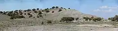[Two] skulls, cervical vertebrae, dorsal vertebrae, synsacrum, caudal vertebrae, humeri, ulna, ischium, partial right ischium, fragments of the right ilium, cervical ribs, metacarpals, phalanges, unguals, coracoid, femur, tibia, and osteoderms.[19] Cedarpelta was not from the Ruby Ranch Member as initially described.[18]