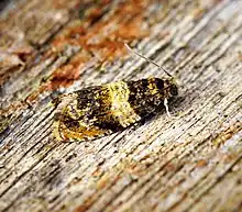 - ↑ Tortrix latifasciana here refers to the species named by Haworth in Transactions of the Entomological Society of London in 1811. In the same year, he used the same name for Acleris laterana in Lepidoptera Britannica.