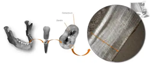 Nonetheless, studies performed on cementum annulation have shown a strong correlation between the deposits the known age-at-death and allow to estimate adult age-at-death with a better precision than classical dental and osseous methods.[8] Cementochronology narrow down the age at death estimations in zoology, bioarchaeology and forensic sciences.[9]