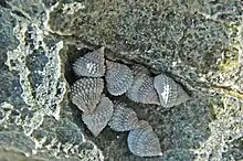 - ↑ Judge, M. L., et al. (2009). Life in the supralittoral fringe: Microhabitat choice, mobility and growth in the tropical periwinkle Cenchritis (=Tectarius) muricatus (Linneaus [sic], 1758). Journal of Experimental Marine Biology and Ecology 369(2) 148–54.