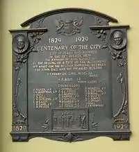 The Governor Sir William Campion presided at the placement of a plaque in the wall of the Perth Town Hall on Barrack Street that recorded the centenary celebrations in August.