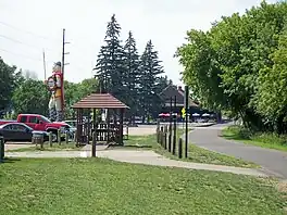 ![]() The trail passing through Alexandria by the statue of Big Ole the Viking, near the Kensington Runestone Museum | |