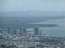 The Central Range is a mountain range on the island of Trinidad. It extends diagonally across the island and is a low-lying range rising from swampy areas into rolling hills. The tallest hills in the range are Mount Tamana (307 m[1]), Mount Harris and Brigand Hill; all located in the northeastern portion of the range. The Central Range mountains are biodiverse, and are home to the Tamana Caves - the site of Trinidad's largest bat roost. Howler monkeys can be found here and numerous species of birds as well.