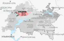 | Districts | Kazan (Aviastroitelny, Novo-Savinovsky, Sovetsky), Pestrechinsky, Tyulyachinsky[1] |