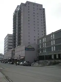 Centre Square Mall is an enclosed shopping mall in Yellowknife, Northwest Territories, Canada. The mall is noteworthy for being the largest shopping centre in the territory[1] and the tallest building in Northern Canada.[2] The first phase of the mall was opened in August 1990; the expansion of the mall beneath the Yellowknife Inn was opened in January 1995.[3][4]