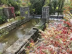 Centreport Aqueduct is a historic aqueduct located in the town of Brutus near Weedsport in Cayuga County, New York. The aqueduct was constructed in 1854-1857 as a part of the Weedsport section of the "Improved Erie Canal." The wood and stone aqueduct carried the Erie Canal over Cold Spring Brook near its juncture with North Brook. The aqueduct structure is approximately 125 feet in length, 125 feet in width, and 16 feet in height. Improvements were made to the aqueduct in 1895 as part of the "Nine Million Dollar Improvement." The aqueduct ceased being used after development of the New York State Barge Canal System in 1917. The aqueduct stone work is still intact and is the prime feature of a roadside park constructed by the New York State Department of Transportation in 1972 with the assistance of the Weedsport Lions Club.[2]