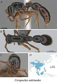 Cerapachys sulcinodis is a South and Southeast Asian species of dorlyine ant first described by Emery in 1889. Colonies comprise up to 2000 workers.