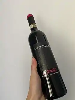 Cerasuolo di Vittoria is a dry red Italian wine from a region around the comune of Vittoria, Sicily. The only wine with DOCG status in Sicily, it is made from a blend of two Sicilian grape varieties, Nero d'Avola (locally known as Calabrese) at between 50% and 70%, with Frappato as the remainder. The DOCG rules also include regulation of cropping rates and a minimum alcohol level of 13%. Cerasuolo means "cherry red" and refers to the colour of the resulting blend of these grapes.[2]