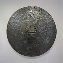 The ceremonial shield of the Tombs of Vergina is a decorative shield found in the Royal Tombs at Aigai (now known as Vergina) in Northeast Greece.[1] The shield was found alongside other lavish grave goods and the remains of family members of Alexander the Great, including Philip II of Macedon. The ceremonial shield dates to the late fourth century B.C.E. and was discovered in 1976.