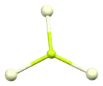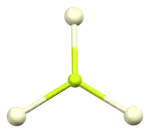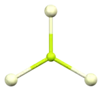 The crystal structure of cerium(III) fluoride is described as the LaF3 or tysonite structure.[6] It contains 9-coordinate cerium ions that adopt an approximately tricapped trigonal prismatic coordination geometry,[7] although it can be considered 11-coordinate if two more distant fluorides are considered part of the cerium coordination environment.[6] The three crystallographically independent fluoride ions are 3-coordinate and range in geometry from trigonal planar to pyramidal.[6]