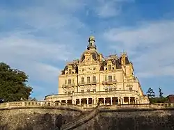 The Château d'Aubiry was used as a filming location in 1960 for the movie L'eau a la bouche by French director Jacques Doniol-Valcroze. It has been protected as an official French historical monument since 2006,[1] and was offered for sale in 2011 with an asking price of 21 million Euros.
