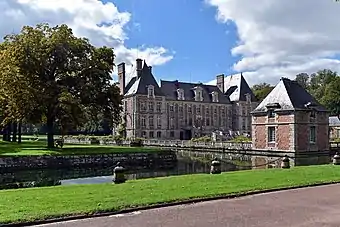 In the 18th century, the house was modernized by Anne-Catherine Gallard, widow of Nicolas Potier de Novion, who opened up a proper cour d'honneur by demolishing the wall and entryway that had enclosed the courtyard.[1] Later her granddaughter Léontine-Philippine de Novion and her husband Aymar de Nicolay further modernized the château (1775–1777) by opening new bays and applying a large pedimented center to each façade. Following the French Revolution the château was abandoned for nearly 40 years, which gave time for a horse chestnut to grow through the floors of the building.[1]