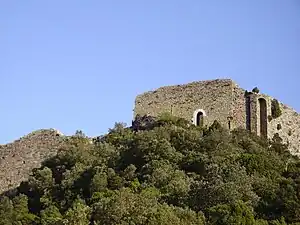 Rebuilt in the 13th century as a royal garrison, the castle was one of the "sons of Carcassonne" (five castles defending the border with Aragon and later Spain). When the border moved further south in the 17th century, the castle lost its function. It was taken over by a band of brigands who used it as a base from which to terrorise and pillage the surrounding country. To stop this, it was demolished by royal decree - a master mason from Limoux spent 1653 and 1654 blowing up the walls with gunpowder and reducing them to piles of rubble. The bill for this work exists today: 14,922 livres and 10 sous.[1]