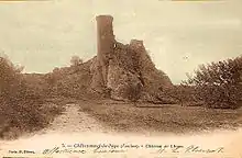 In 1077, his successor Rostaing granted the fief to Pierre d'Albaron, who built a keep there.[3] The first mention of a Castro Novo (new fortified village), which led to the name Châteauneuf-du-Pape, does not appear until 1094[4] It became the château de l'Hers after it was expanded in the 12th century and then was renovated for the first time during the 13th century.[5] Certain historians have said that the Knights Templar used it at the end of the 12th century.[1][6] This legend was disproven by the historians in the 20th century.[7]