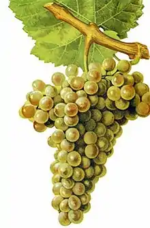 Dual-use grape - both a wine and a table grape - it is cultivated somewhat lesshere because it doesn't have much tannin or color. It brings elegance, fruitiness and finesse to the wine.[13]