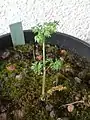 The cultivation is similar to carrots and parsnips. An adequate site for cultivation is characterized by light and fertile soils.[13] The soil should be moderately moist. Cultivation period is from 9 up to 10 months.[14] The seeds require exposure to cold temperatures (vernalization) to break dormancy in spring. The crop cultivation starts therefore in the autumn. The dormancy ends with at least 8 weeks of continuous humidity and temperatures below 5 °C. After stratification, germination is at optimum with a temperature range between 5 and 10 °C. At temperatures above 25 to 30 °C significant germination inhibition occurs.[15] Sowing is done directly, without any seedling cultivation, from September to November. Distance between rows is usually from 20 up to 25 cm with a distance of 4 to 6 cm between seeds.[16] In the first year of growth, after sprouting in spring, the tuber develops with a leaf rosette just above ground. Voles are a common pest for this crop in the field.[17]
