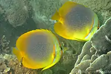 - ↑ Hsu, Kui-Ching; Chen, Jeng-Ping & Shao, Kwang-Tsao (2007). "Molecular phylogeny of Chaetodon (Teleostei: Chaetodontidae) in the Indo-West Pacific: evolution in geminate species pairs and species groups" (PDF). Raffles Bulletin of Zoology Supplement. 14: 77–86. Archived from the original (PDF) on 11 August 2007. Retrieved 8 December 2020.