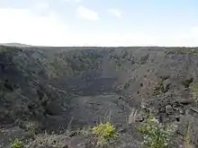 The road begins at the highest part of the eastern rift zone where frequent rains created a rainforest. 3 mi (4.8 km) down the road is the vent of Kīlauea volcano.[2] The road goes another 2 mi (3.2 km), passing the group of craters for which the road is named, and then crosses a narrow flow of pāhoehoe lava that erupted in 1974, before it reaches Lua Manu, the first pit crater.[3] The crater formed through a sinking of the earth surface and not as a vent for lava.[4]
