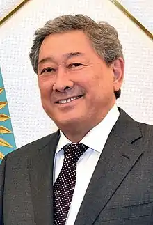 The Chairman of the Mäjilis of the Parliament of the Republic of Kazakhstan (Kazakh: Қазақстан Республикасы Парламенті Мәжілісінің Төрағасы; Russian: Председатель Мажилиса Парламента Республики Казахстан) is a government official in Kazakhstan who heads the Mäjilis, one of the Parliament's lower chambers, and is responsible for opening sessions, preside over regular and extraordinary joint meetings.[1] The post was formed on 30 January 1996 at the first parliamentary session opening after the 1995 constitutional referendum which was held in August 1995 where majority of Kazakh voters approved of the new constitution which created a bicameral legislature that included the lower chamber Mäjilis.[2]