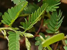 Chamaecrista pumila is a species of flowering plant in the family Fabaceae.[2] It is native to China and Tropical Asia.[2] It grows up to 25–75 cm (9.8–29.5 in) tall.[3]