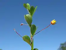 Chamaecrista rotundifolia, round-leaf cassia,[1] also known as pasto rastiero, roundleaf sensitive pea,[2] and Wynn cassia,[3] is a short-lived perennial or self-generating annual plant [2] in the subfamily Caesalpinioideae of the family Fabaceae.[4] It originated in North America, Mesoamerica, the Caribbean, and Tropical South America but is grown in other parts of the world today.[4] It grows in dry soils and areas of low rainfall, as well as in low-fertility and acidic soils with high levels of solubilized aluminum.[5] It can also reduce erosion and runoff over time.[6] These factors make it a potential asset to farmers in the African Subtropics and elsewhere where soil quality is a barrier to farming.[7] It serves as a source of feed for livestock [8] and acts as a green fertilizer, raising soil quality and nutrient content which can improve yields.[9] These combined benefits make round-leaf cassia a potential solution to many problems faced by poor farmers and their communities.