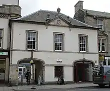 The first municipal building in the town was a medieval tolbooth which stood on the south side of the Eddleston Water near the Bridgegate and which dated back to the 15th century.[2][3] By the early 17th century, the tollbooth was already in a dilapidated state.[4] The second municipal building was a town house on the north side of the High Street adjacent to Cuddy Bridge, which was built to a very plain design on the site of a 14th century chapel and which was completed in 1753.[5][6]