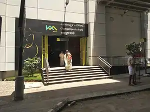 Changampuzha Park is a station of Kochi Metro. It was inaugurated by the Prime Minister of India Narendra Modi on 17 June and opened for public on 19 June 2017 as a part of the first stretch of the metro system, between Aluva and Palarivattom.[1] The station is located between Edapally and Palarivattom,[2] close to the Changampuzha Park.