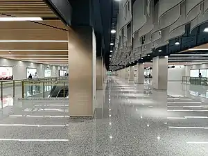 Changfeng Park (simplified Chinese: 长风公园; traditional Chinese: 長風公園; pinyin: Chángfēng Gōngyuán) is a metro station on the Line 15 of the Shanghai Metro. Located at the intersection of Daduhe Road and East Yunling Road in Putuo District, Shanghai, the station is scheduled to open with the rest of Line 15 by the end of 2020.[1] The station is named after the nearby Changfeng Park. It is located in between Daduhe Road station to the north and Loushanguan Road station to the south. The station has 3 platforms, one island and one side platform. The inner island platform is not in service. Trains heading to Zi-Zhu Hi-Tech Park use the outer island platform, whilst trains towards Gucun Park use the side platform.