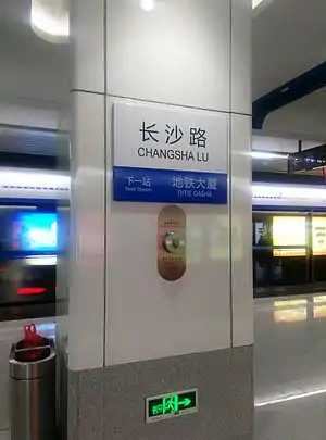 Changsha Road (Chinese: 长沙路) is a station of the Qingdao Metro on Line 3, which opened on December 16, 2015.[1]