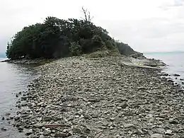 Chapel Island is a limestone outcrop that lies in the Leven estuary of Morecambe Bay in England, less than one mile (1.6 km) from the shoreline at Bardsea in the area known as Ulverston Sands. It is located at 54°10′27″N 3°02′30″W / 54.1741°N 3.0416°W (OS grid ref. SD 321759). It is one of the Islands of Furness in the county of Cumbria, in the area of the historic county of Lancashire ("Lancashire north of the sands"). The island is approximately 450 yards (410 m) long and just over 100 yards (91 m) at its widest. Its area is about 7.5 acres (3.0 hectares).