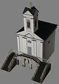 Under the chapel was the family tomb of Rholl, which was robbed during World War II. On a wall inside this chapel, this legend in Hungarian is well preserved: