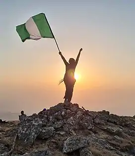 Chabbal Waddi (also known as the Mountain of Death) is located in Nigeria and, at 2,419 m (7,936 ft), is the country's highest point.[2] It is located in Taraba State, near the border with Cameroon, on the edge of the Gashaka Gumti Forest Reserve and the Gashaka-Gumti National Park on the Mambilla Plateau.[3] It is a part of the Bamenda-Alantika-Mandara Mountain chain of Nigeria and Cameroon.[4]