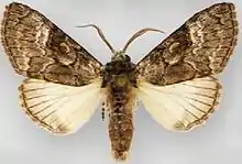 Charadra moneta is a moth of the family Noctuidae. It is found from central and eastern Arizona (Coconino and Apache Cos.), the San Mateo Mountains of New Mexico, the Guadalupe Mountains of New Mexico and Texas, and the Big Bend region of Texas; south to the Sierra Madre in Nuevo León, northern Mexico.