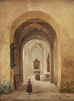 Italian Cloister (1825, private collection), possibly one of the seven paintings depicting each of the seven sacraments which were purchased from Renoux by his patron Alexandre du Sommerard.[9]