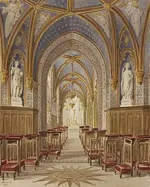 Charles-Caius Renoux (born in Paris, 1795; died in Paris, 14 March 1846) was a French painter, lithographer, and illustrator. He first achieved success with paintings of medieval churches, particularly the ruins of cloisters and monasteries destroyed during the French Revolution, works for which he is still best known. Renoux also painted landscapes, large-scale battle scenes, and historical subjects, works which uniquely prepared him for the final phase of his career, the creation of spectacular dioramas, the "moving pictures" of the era.[1] He also taught at the École des Beaux-Arts in Paris; his notable students included Narcisse Berchère and Hector Hanoteau.