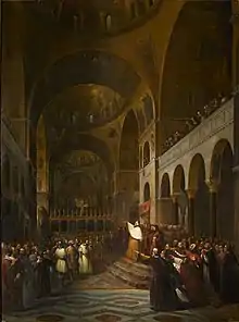 Traité Conclu entre les Croisés et les Vénitiens dans l'Église Saint-Marc en 1201 (1839, Musée National des Châteaux de Versailles et de Trianon)