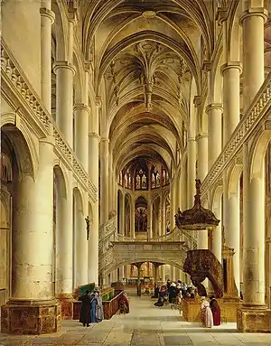 15. 1 2 Schaack-Millet, Marion (May 2018). "L'Objet du mois—Un intérieur d'église et Le cloître de Saint-Sever près de Rouen" (PDF). www.versailles.fr.: "L’artiste utilise les effets de contrastes lumineux, et les lignes ombrées de l’architecture qui créentdes jeux de construction abstraits, repris de façon répétitive, à la manière des peintres nordiques (on pense à Hendryck van Steenwick le jeune notamment."