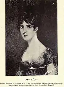 The family accompanied their parents to Canada, on Bagot's appointment as Governor-General of British North America on 12 January 1842. After her husband's death at Kingston, on 18 May 1843, she accompanied his remains to England. She died in London on 2 February 1845.[10]